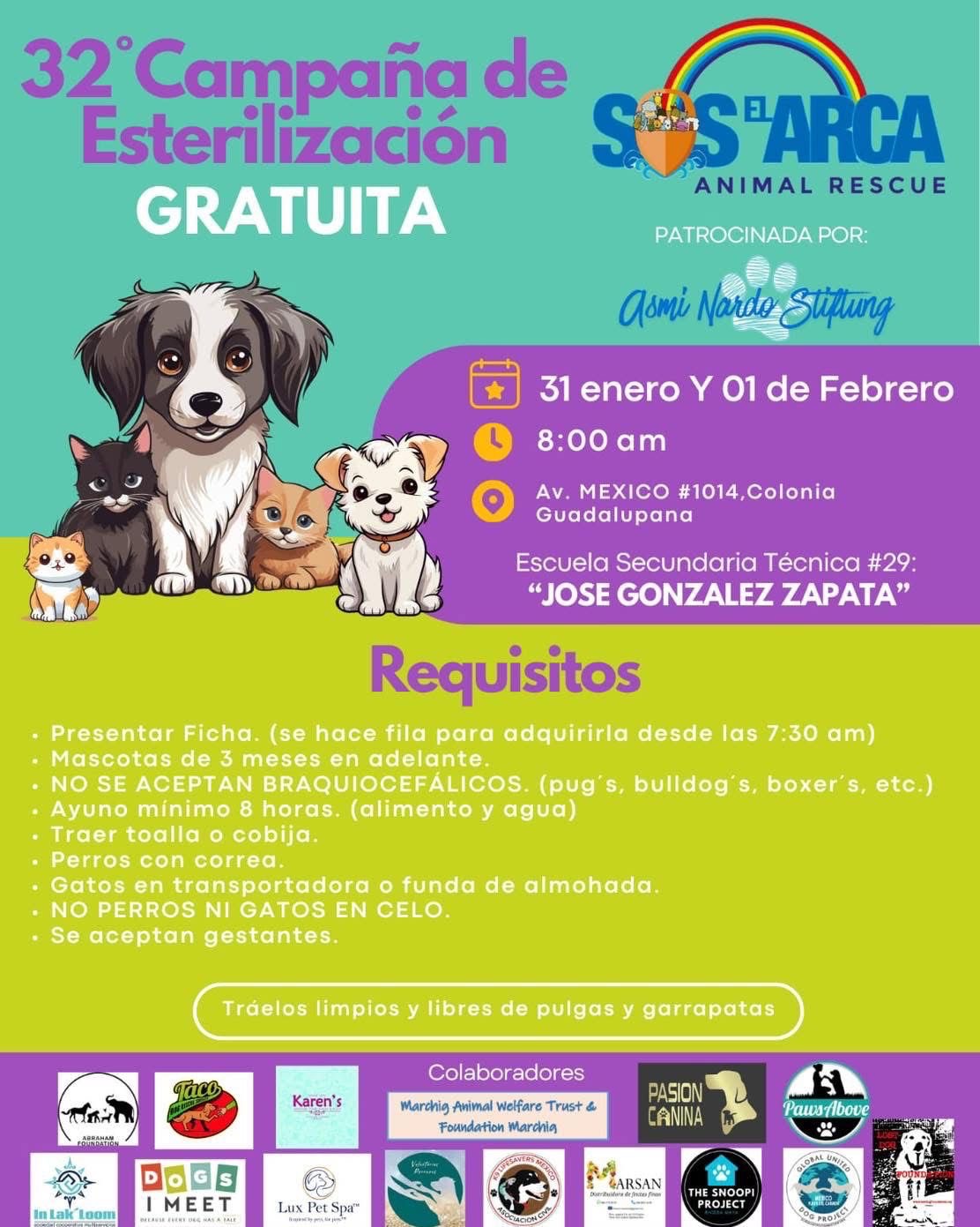 31 de enero y 1º de febrero en la colonia Guadalupana de Playa del Carmen, a partir de las 8:00 am. Información importante en el flyer o aquí. Contribuye al control de la sobrepoblación de perros y gatos en Playa del Carmen.